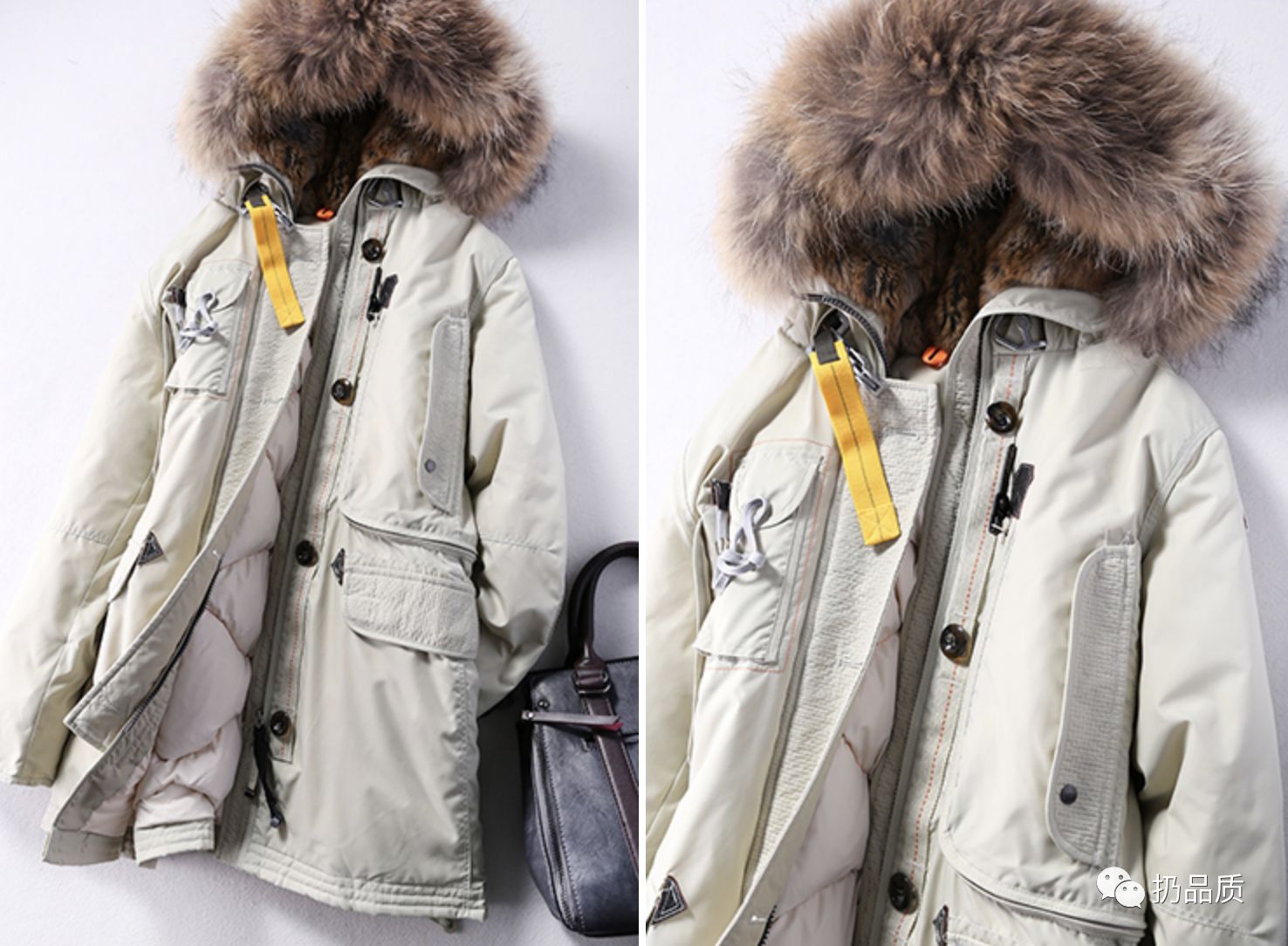 配置就是防风面料(重)90%充绒量,貉子毛领