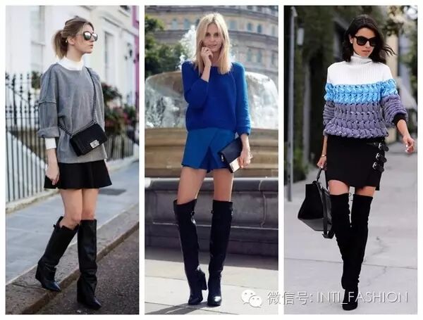 毛衣与半身短裙搭配在一起,不仅时髦还增强了层次感这时穿上一双长靴带来一丝女人味。