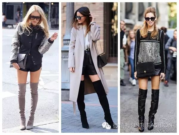 另外今年时尚的新东西,皮短裤搭配长靴,把肉肉都遮在短裤里面,这身搭配时髦精们真的是太爱了。