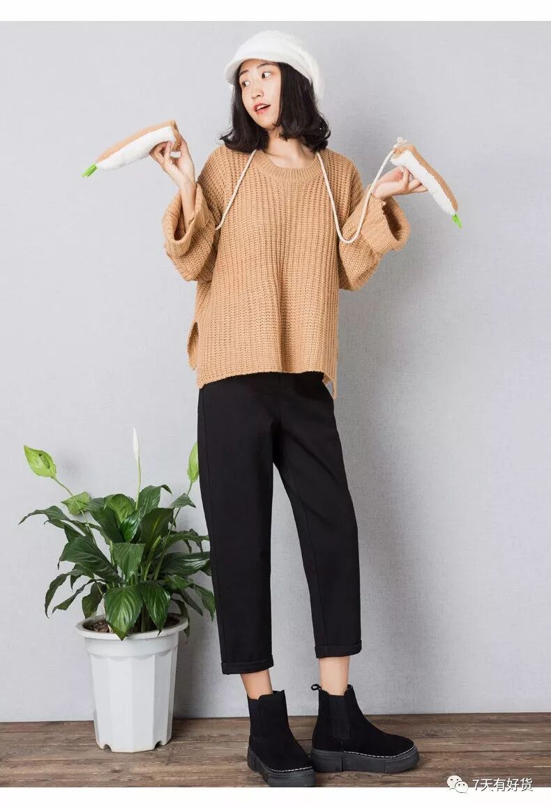 不喜欢哈伦风的可以选择这款九分的微喇叭裤,独具个性却不显夸张,颜色是当下最为流行的焦糖色,搭配驼色的大衣瞬间穿出大牌感,毛呢的面料贴身更是柔软舒适。