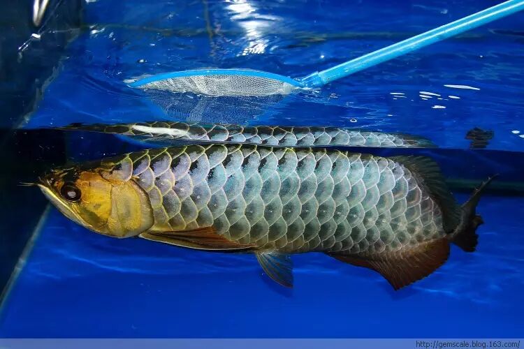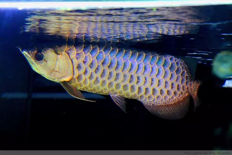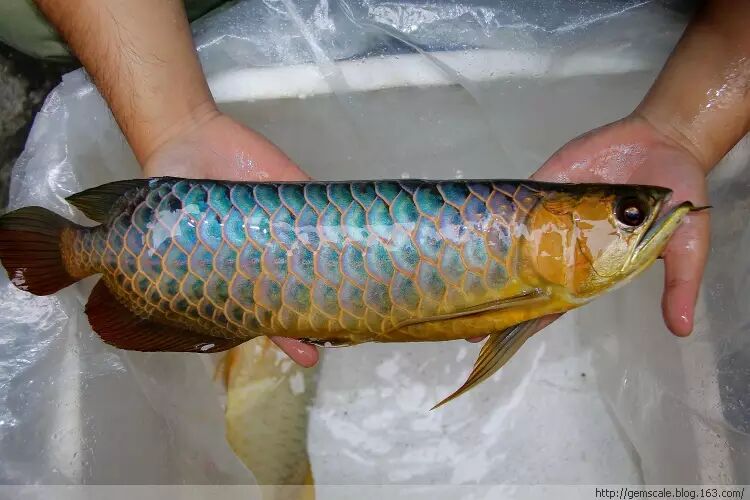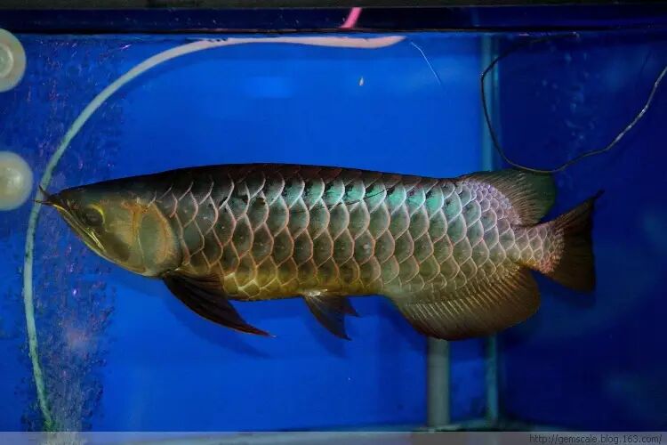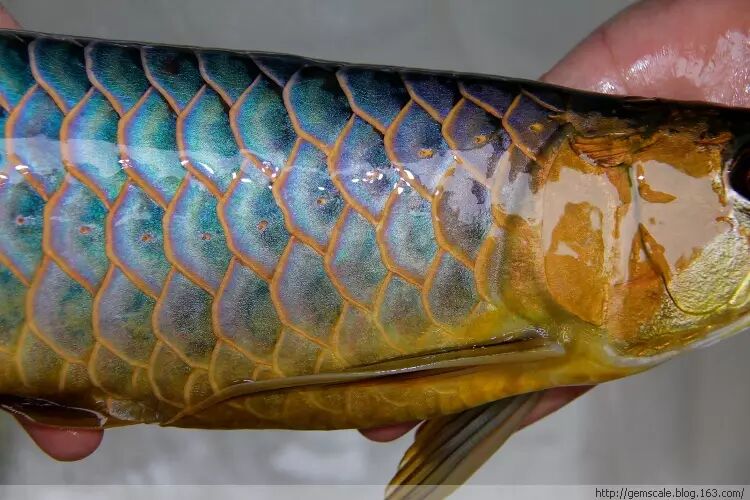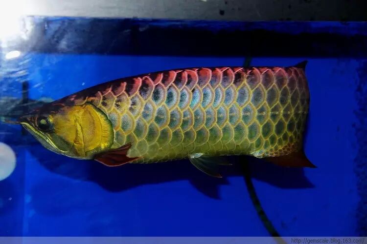 4。真正的蓝色过背往往过背不见得十分早,20CM的个体第五排100%亮,小珠鳞50%以上亮是基本合适的。若在此尺寸第六排鳞片表现已达完美的鱼,反而成长后金色容易散掉,成为金蓝相溶的个体,锁框将会十分困难。