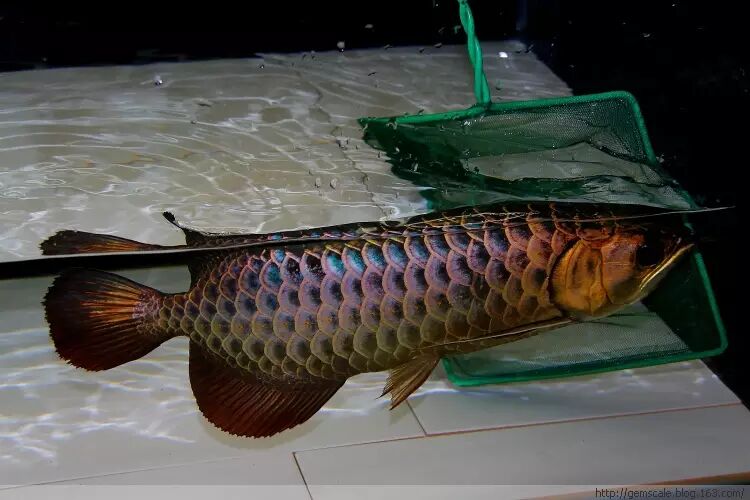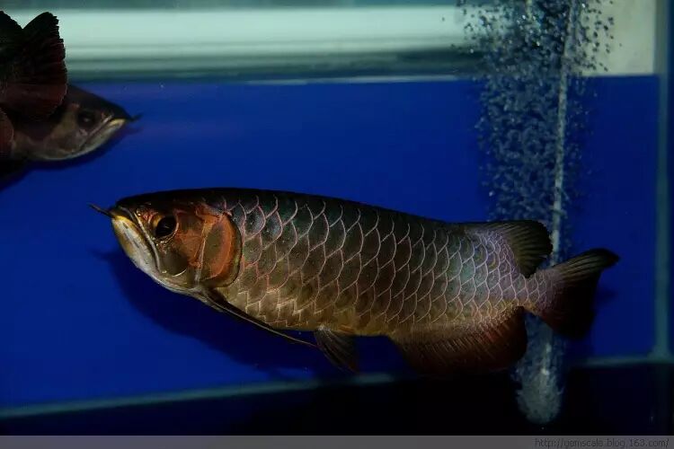 纯种过背“几十年如一日”地维持着大面积的蓝底是不可能的。许多被众多杂志引为范例并多次转载的经典个体(如东京湾赤井龙一的“亚洲第一蓝”)在经年之后也逐渐发生了不同程度的吃框,演变成为“分层蓝底”的情形。我认为所谓蓝底,是为在龙鱼“观赏黄金时期”所能维持的一种相对稳定的鳞色状态。与红龙一样,过背的发色是终生进行的。但红龙发红是大家所向往的,而蓝底过背发色出来的金,则会吃掉底色,往往不是很受待见。说到底,是龙鱼发色方式与发色速度的问题。像红龙一样,特定发色方式和节奏的个体群的基因是具有一定稳定性的,所谓正宗的蓝底过背,应为具有这种发色特质的纯种过背纯化繁殖的子代。