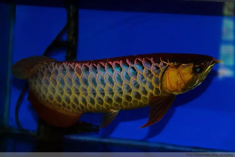 2、蓝色的面积广大,占据从第二鳞框到鳞底的全部面积,高品质的个体即使是第五排也应丝毫不见鳞垢。