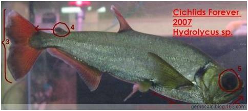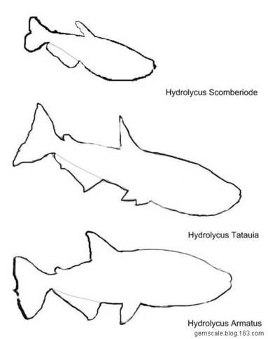 巨暴Hydrolycus Armatus、红尾暴牙Hydrolycus Tatauia和Hydrolycus Scomberiode的大致区分: