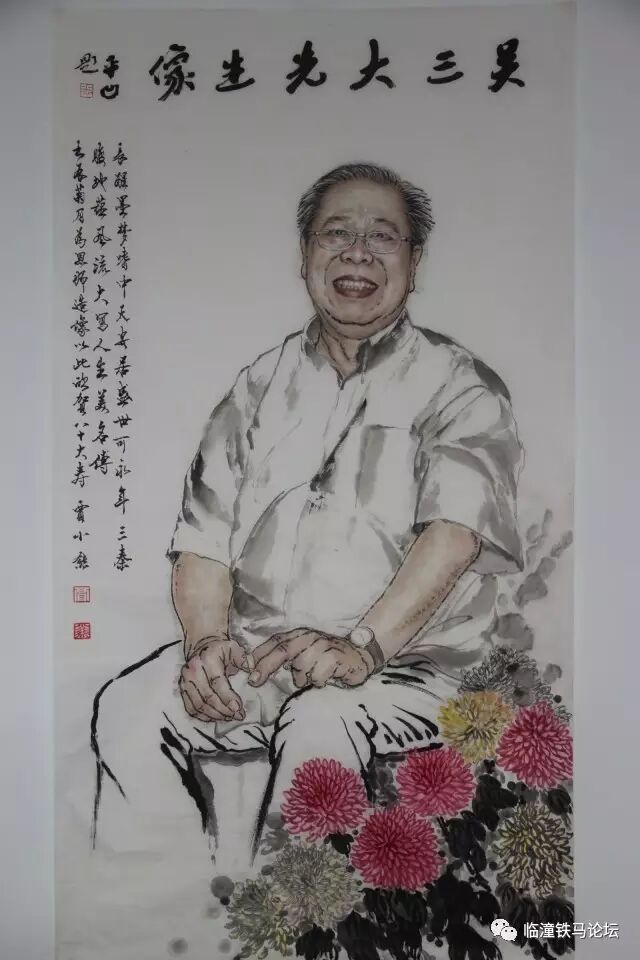 画家贾小熊的名字,我是在书坛巨擘吴三大先生八十寿辰的酒会上第一次听说。我往吴先生寿宴会场走去,门口赫然有一幅大于真人两倍的造像,有若三大先生本人在门口迎迓宾客。透过那极有魅力的笑容,你能体味到老人的健康爽朗与豪放旷达,神韵传于形态之中。我驻立良久,打听作者贾小熊为何方才俊。小熊便走过来,自报家门。嗬,好年轻的一个汉子,三十来岁,寸头,谦恭有理而又不失自信。