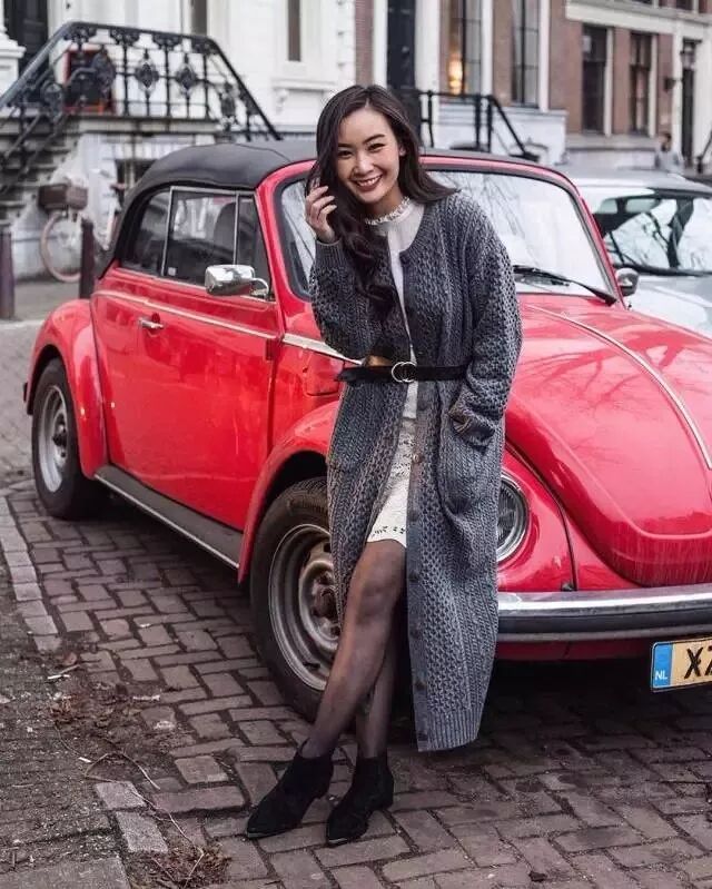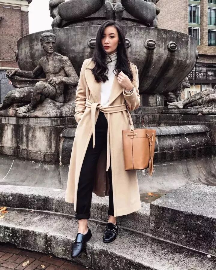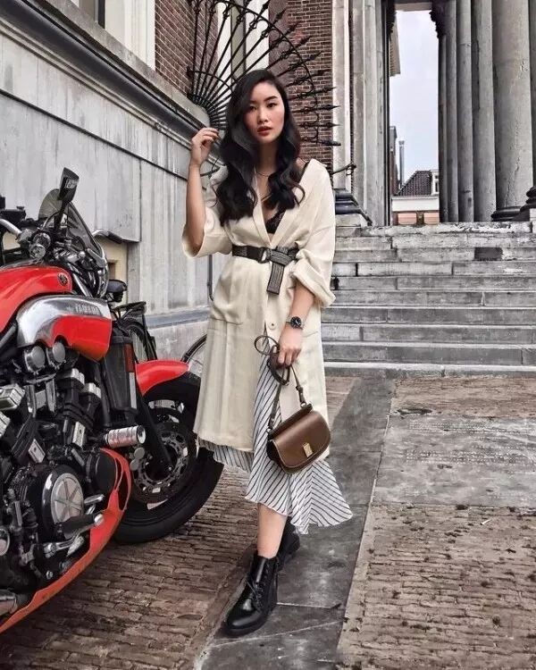 即使是冬天穿各种外套的时候,Levi也喜欢选择有腰带的款式,即使没有自带的腰带,她也能选择一条腰带来制造腰线,显瘦显高的同时还增加了精致感。