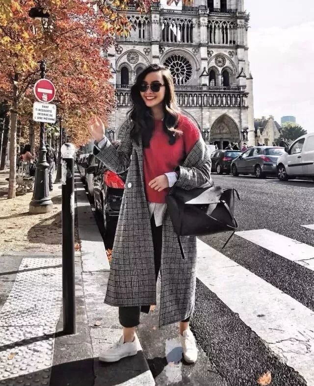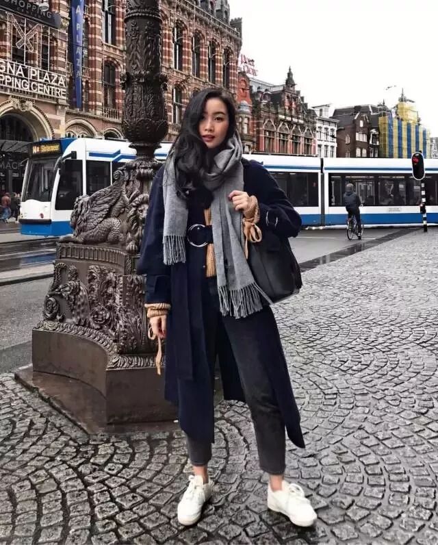 谁说小个子女生穿长外套的时候不能穿平底鞋?Levi就喜欢穿运动鞋,看起来活力十足。