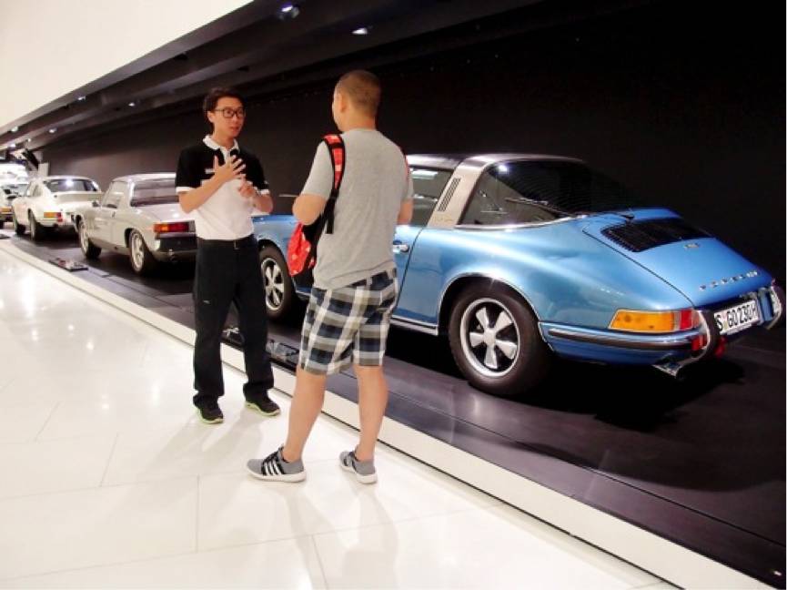 车友们在顶楼的 Christophorus 高级餐厅享受午餐,同时被每张餐桌上的“装饰品”——一部 1:18 的 Porsche 经典车型模型吸引住了目光。整个博物馆中有超过 80 台经典车展品,包括 356,550 ,911 等经典车型,展现了 Porsche 从创立至今的辉煌历史。