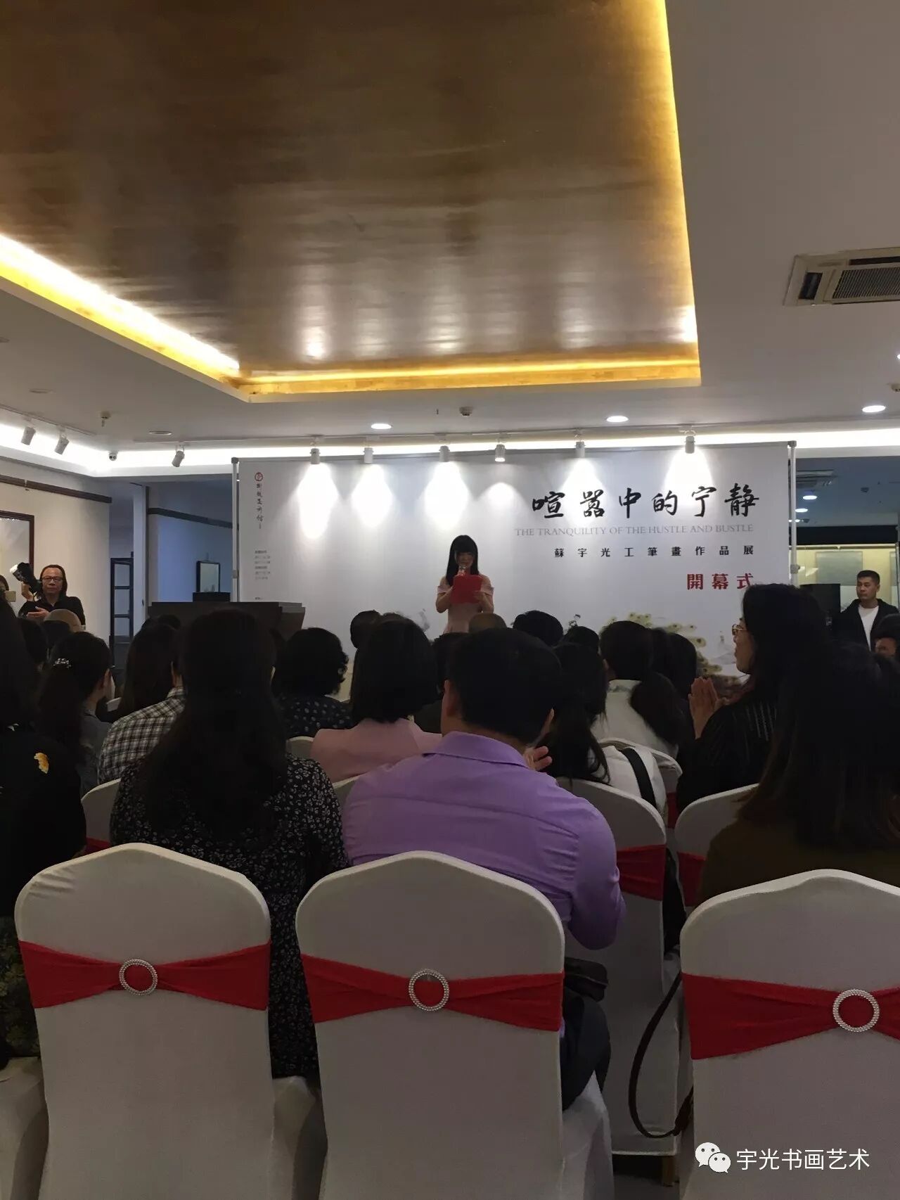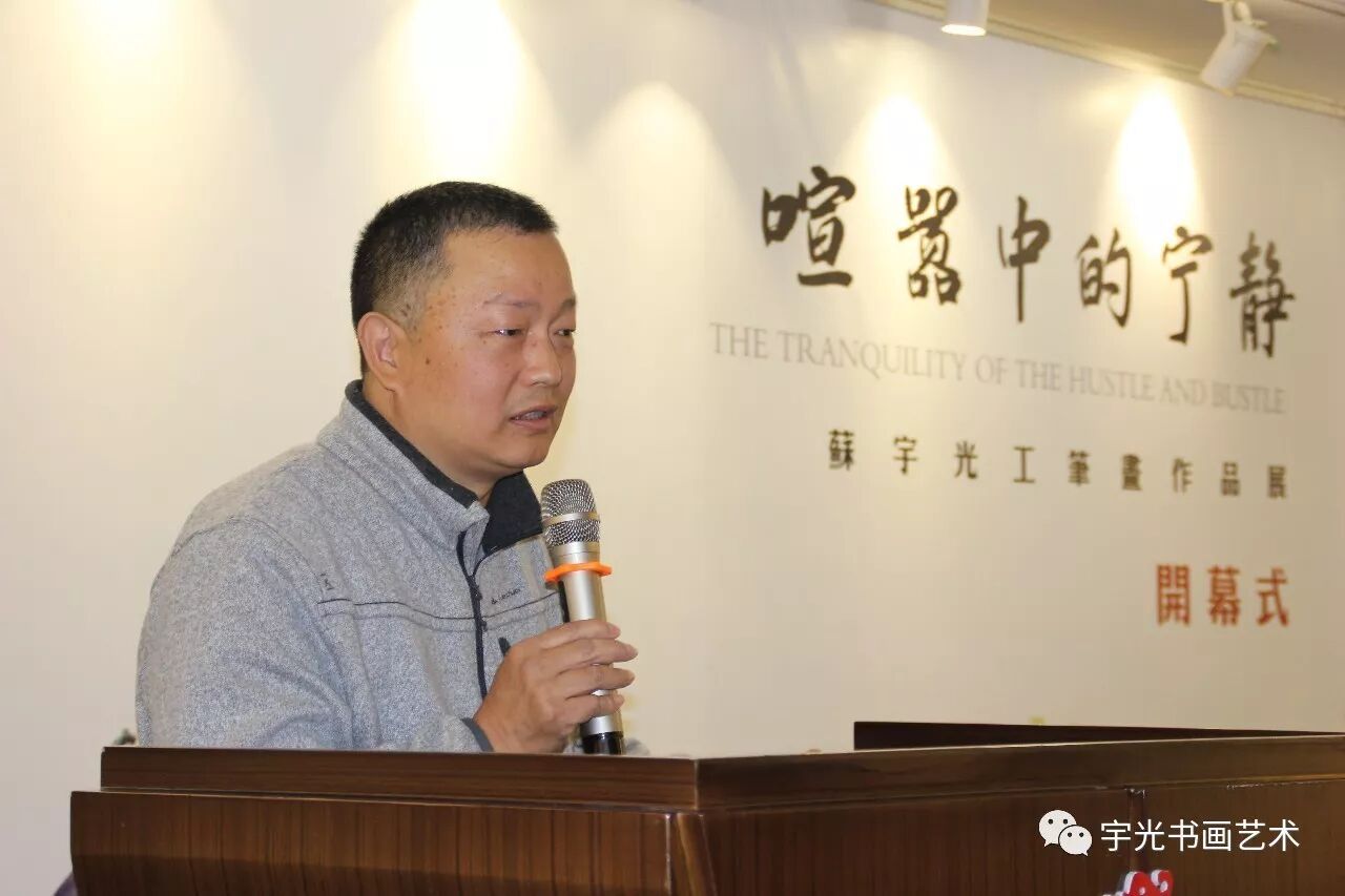 开幕式上,苏州彬龙美术馆馆长钱西姿女士致欢迎词;,苏州美术家协会副主席卢卫星,北京荣宝拍卖有限公司副总经理、左安平,《美术观察》学术部主任董立军、策展人赵峻青分别致辞,苏宇光先生致答谢词。