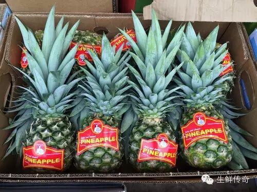 三、台湾香水凤梨:很甜很香,水份充足,一般8个一箱,最近市场批发价格130元/箱左右。