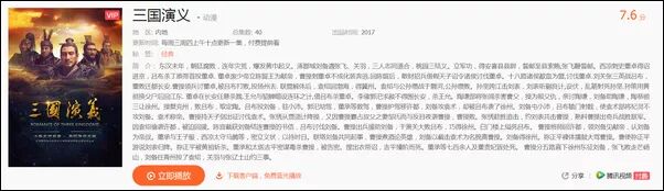 《三国演义》3D动画版最近十分火爆,才出了5集,评分就已经达到了7.6,而且第一集的点击量已经超过了4000万。