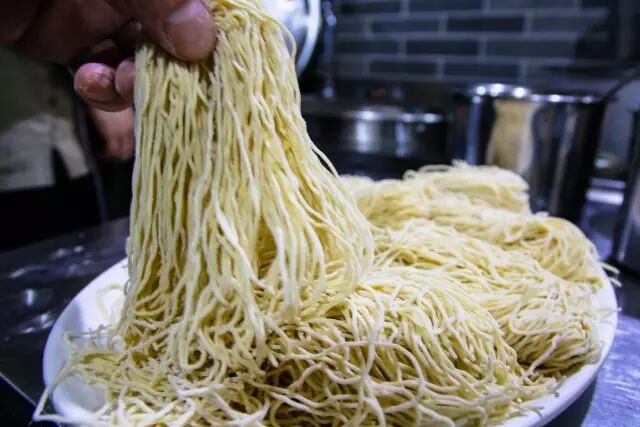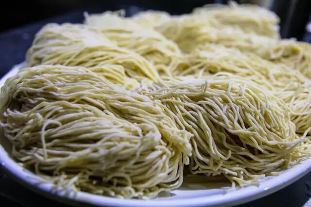 每天新鲜自制的面条,泛着鸡蛋黄色。