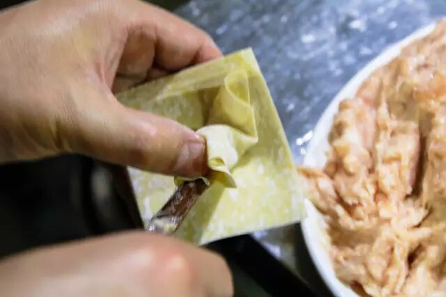 不同于广式云吞的包裹手法,