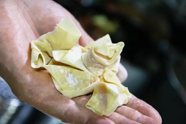 为了保持口感,云吞都是现点现包,