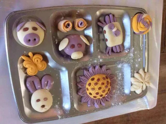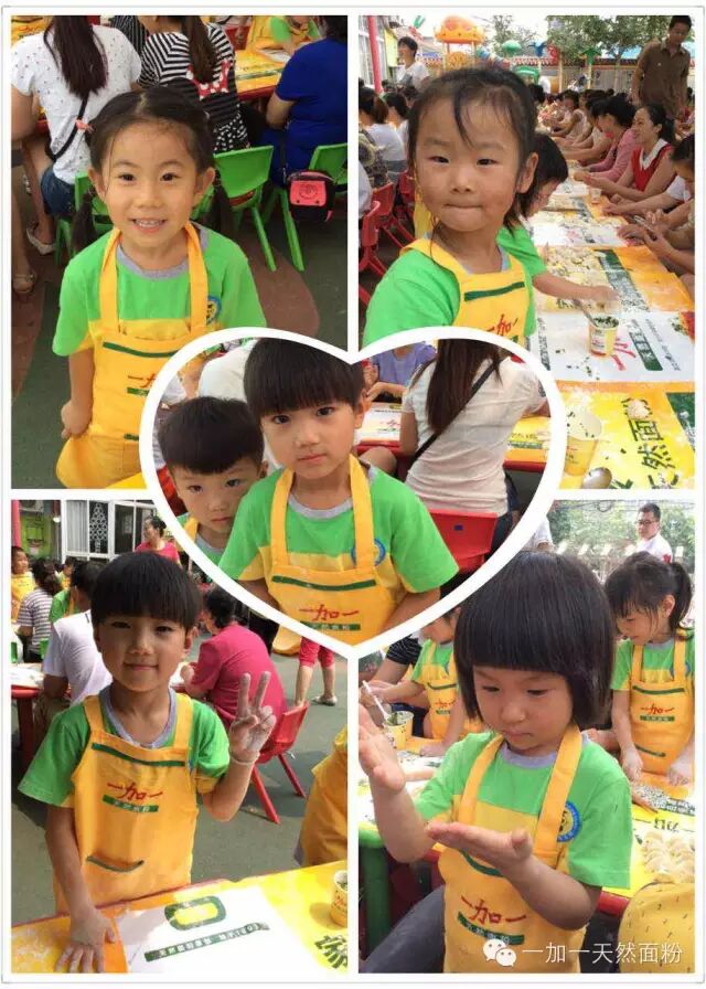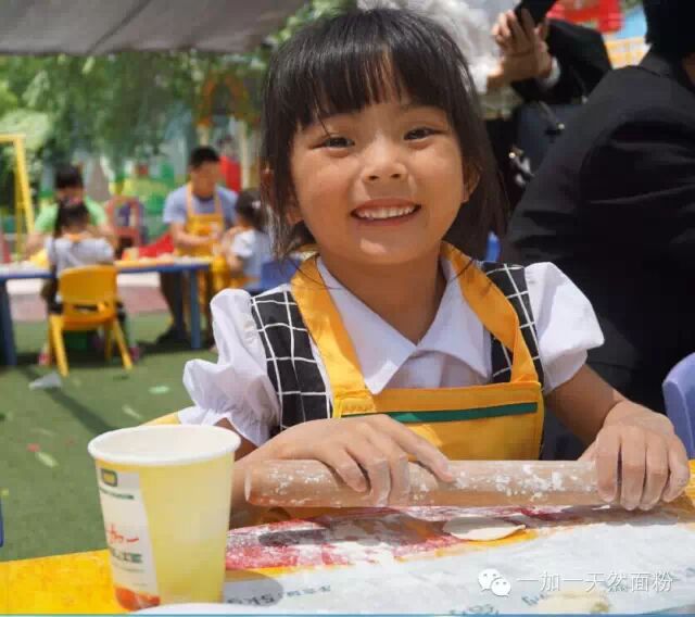 2、一加一和永辉超市提供面粉,和好的白色和彩色面团以及围裙,家长需自带擀面杖和剪刀以及其他装饰性材料哟。