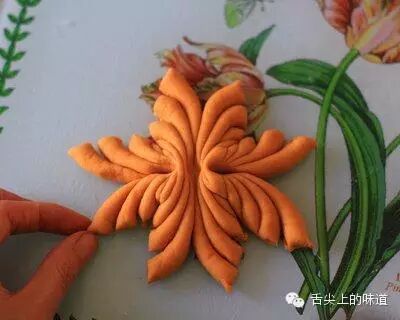 10. 然后,这样稍微一造型就可以了。放到蒸锅里醒发一倍大以后,开火,蒸锅出热气以后再整15分钟就可以了