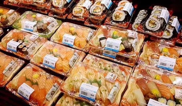新鲜的刺身、寿司品种十分齐全,成品和半成品一应俱全,还有葡萄酒专区,来自各国的葡萄酒都清楚标明原产地,方便客人一目了然地挑选自己喜欢的品种。