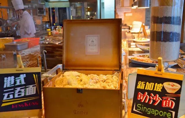作为沪上2016最佳酒店自助餐,品种没话说,很丰富,多个灵活互动的中西式开放厨房能够以最快速度增添食物,你尽管放开肚皮吃好了。爱酒的小伙伴,还可以免费畅饮意大利进口红酒。
