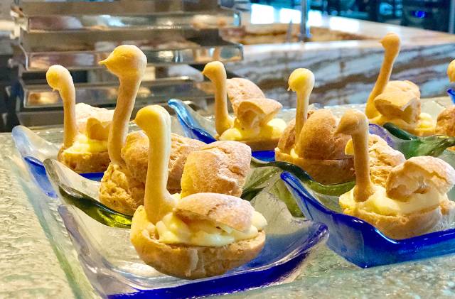 另外怎么少得了妈咪和宝贝最爱的甜品、冰激凌?,更有小朋友喜欢的棉花糖、软糖。这里的“小天鹅泡芙”总有很多小粉丝停下来看很久,因为做得太惟妙惟肖了。另外,水果、现榨果汁都挺新鲜,爱和咖啡和红茶的话,也都有配备。