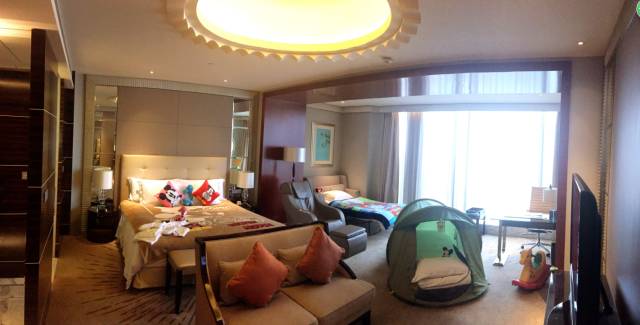 1、1晚 亲子家庭房 65平米 7,20-25楼 大床2米/双床1.2米 1张2米大床或2张1.2米双床,另加1张1.2米沙发床