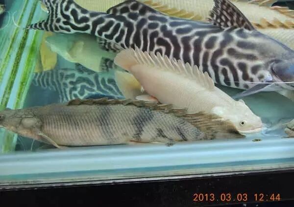 绿皮辣椒红龙65CM ( 白天开白灯用闪光灯照的 )、红尾金龙43cm ( 金质很重 )、黑带 85-90CM