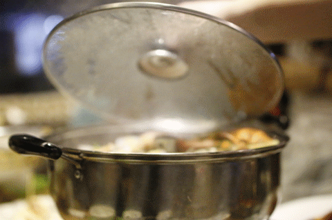 麻虾、膏蟹、圣子、花甲、白贝铺盖在以娃娃菜和粉丝打底的“温床”上,小火慢慢蒸煮至麻虾完全变红之后就可以揭锅了。再淋上秘制的酱料,配上蒜蓉的香气,海鲜的腥味荡然无存,只留下细腻的口感和鲜香的味道。