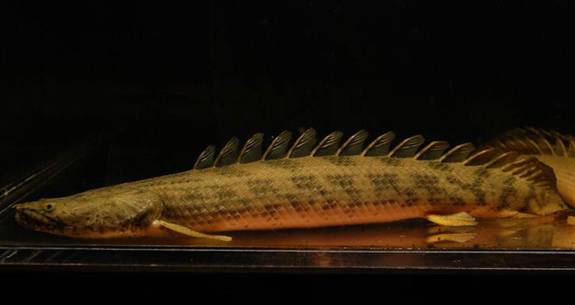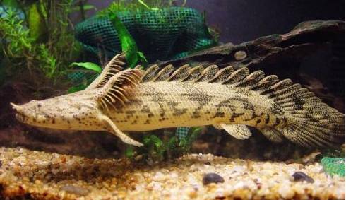 多鳍鱼的俗称是“恐龙”,现存的硬骨鱼是由远古的软骨鱼进化而来的,恐龙正是这个进化过程的中间环节。