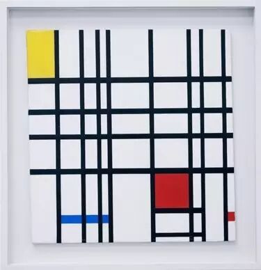 ▲《红黄蓝构成》,彼埃·蒙德里安作,1937
