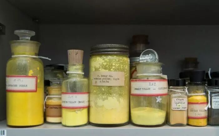 多年来,福布斯已经收集了2500种不同的色素,每种颜色都记录有出处、制作及使用方法。它们按照色系排列,被整齐地摆放在博物馆四楼一排排高高的架子上。