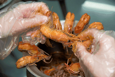店内所有的虾一律采用新鲜的罗氏虾,老板亲自到黄沙提货。