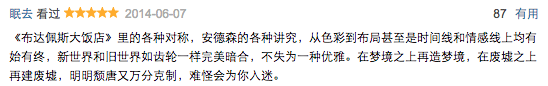 如果《你的名字》随便截屏都是一张壁纸的话,那么《布达佩斯》每一帧都堪称为精美的海报。