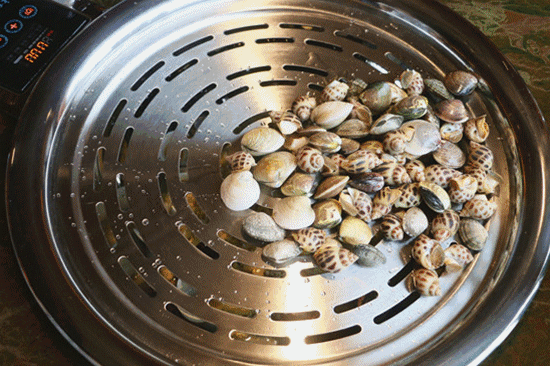 上蒸食材(贝类、虾蟹类、鱼类、肉类或者蔬菜等等)