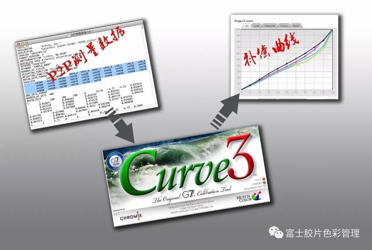 G7校准方式可以采用手绘方式,测量各个阶调的密度值并与目标值相比,类似于TVI的方式计算出C和K的补偿曲线,M和Y则需要到特别设计的灰色查找测试图GrayFinder中单点查找并绘出补偿曲线,过程相对较为繁琐,效率较低。当然也可以软件计算方式。目前,除了官方原始的CHROMiXCurveTM软件外,越来越多的软件已支持G7灰色校准方式,比如Bodoni PressSIGN,Heidelberg Color Toolbox, Alwan Printing Standardizer X,CalderaPrint Stand Verifier G7, ColorGate Production Server, FUJIFILM ColorPath Sync, KonicaMinolta ColorCare, Mutoh G7Calibrator。在实际操作中,绝大多数的企业都采用软件校准方式。只需测量P2P数据,然后将数据导入到软件中,软件即可计算出补偿曲线,可谓非常的快捷。