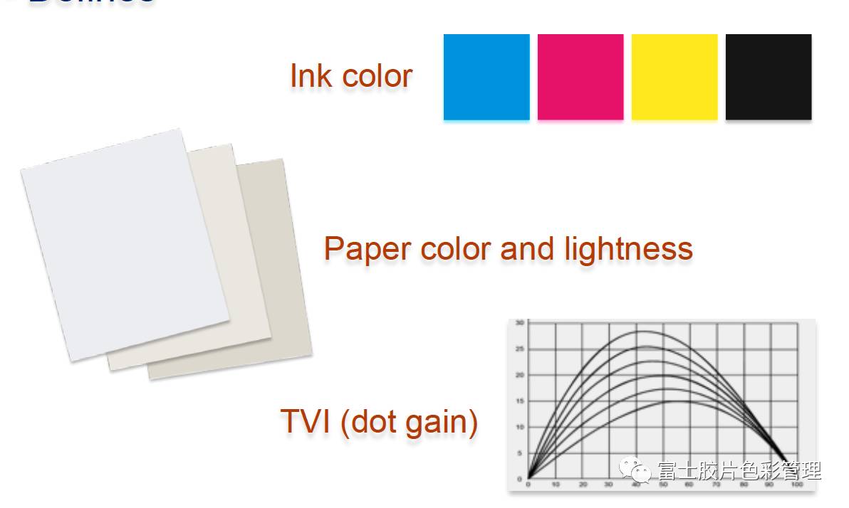 国际印刷标准ISO 12647-2是国际通用的平版胶印的唯一标准,有广泛的共识和应用。其中规定了承印物色彩(纸张)、油墨实地色相以及阶调复制曲线(网点扩大)等主要影响颜色的因素。基于这些条件进行测试,每个印刷企业都可以得到一个本厂的标准,但每个企业设备、物料、做法等又不尽相同,虽然有一个广义指导性标准纲领,依然无法保证颜色的统一性。