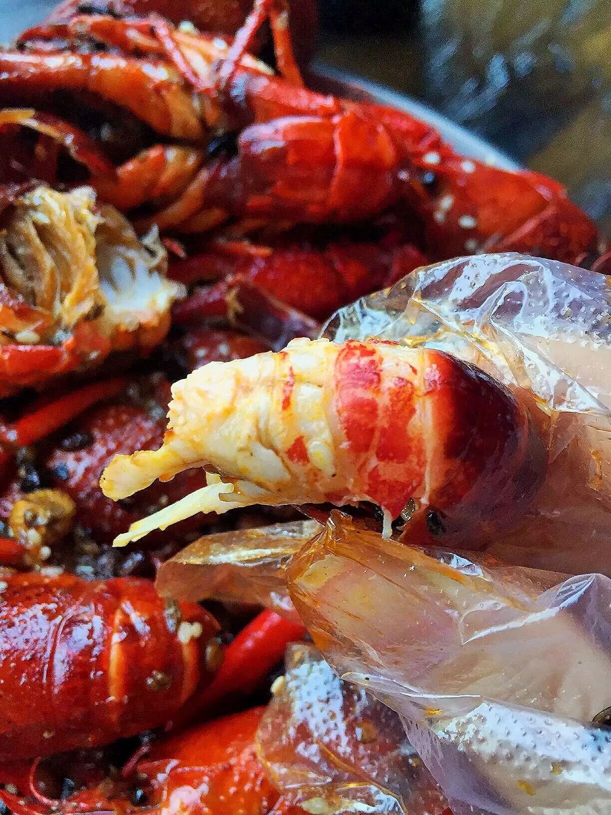 拿起小龙虾先轻轻的吮吸掉表皮上附着的汤汁,鲜辣的滋味瞬间感染了味蕾,食欲一下子就被打开了……