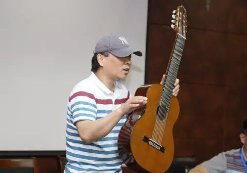 第二天开学典礼后,是我们的吉他学会会长王友民老师的古典吉他课,王老师就弹琴如何明确树立音乐形象给我们深入分析和现场指导。王老师讲解,乐句、音符,每一个细节都要交代的清楚,他强调,要有一颗真诚弹琴的心,所表现的音乐要有承重感、故事感,要熟悉音乐的律动和强弱关系,结合合理的技术演奏的音乐一定是好的音乐、动人的音乐。王老师的课细腻、全面,虽然只有一个下午的时间,但我们似乎已领略弹琴的真谛,并已对王老师的课上瘾,也因为只有一个下午的时间,伙伴们都聚精会神的聆听,一个个求知似渴,生怕错过了某个细节。