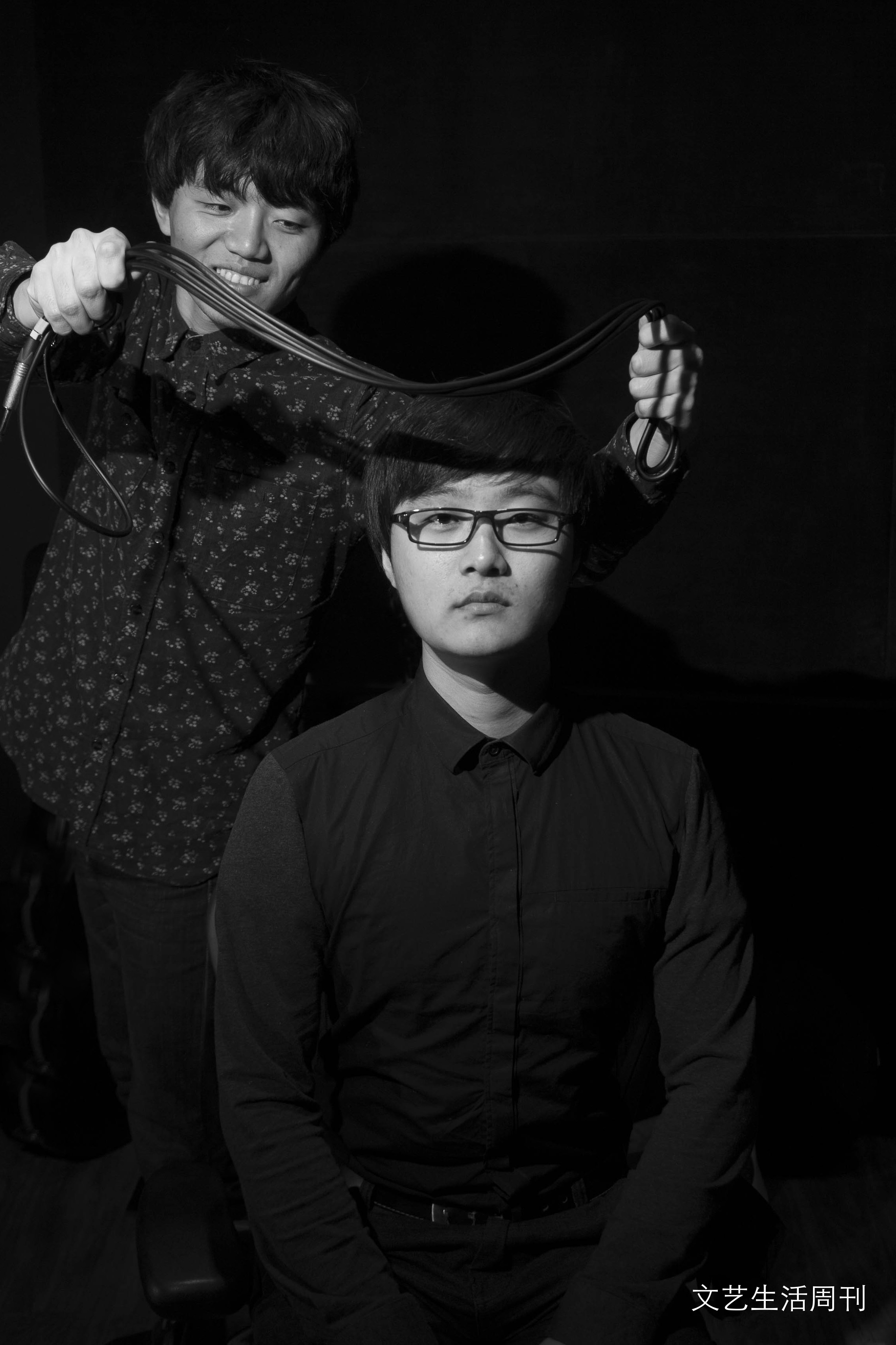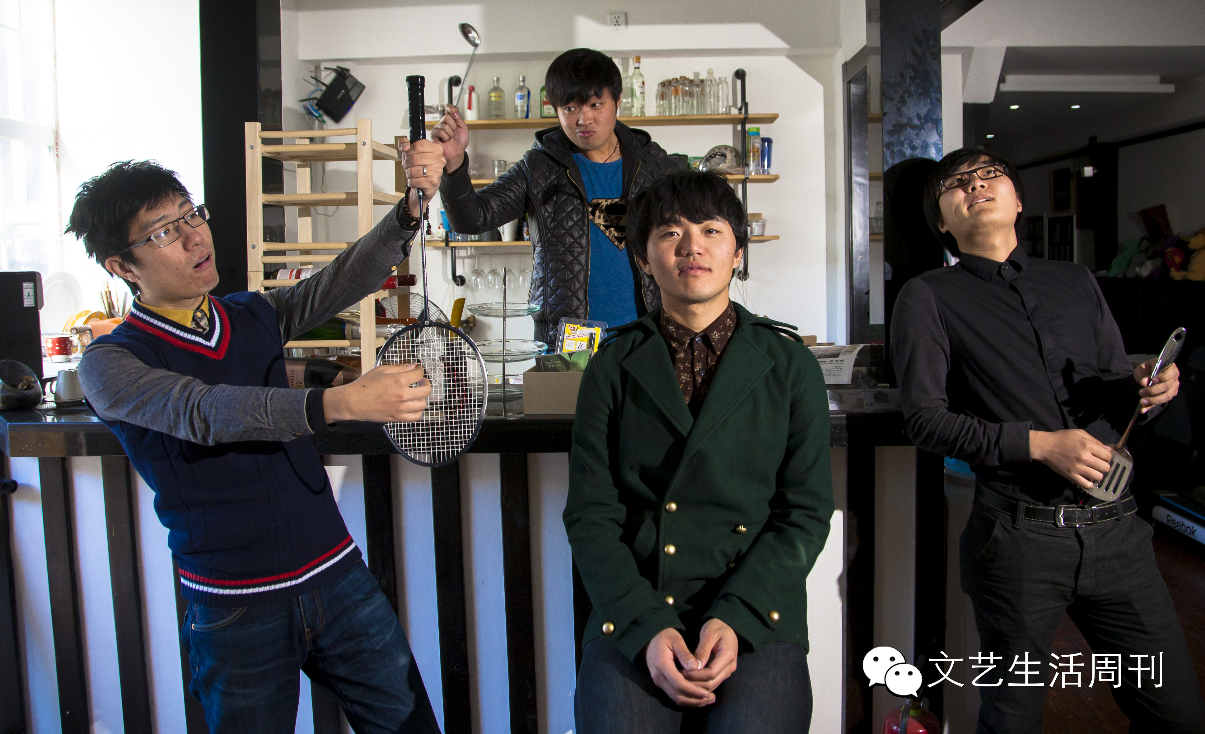 阳光暖得不像冬天,学会议展览管理的贝斯手李卓因为高烧来得晚,捂着棉袄进屋缓了好一阵儿才打起精神。那几天的音乐录影带拍摄,把小伙子们折腾得够呛,“昨天又病倒两个。前天在机场高速上拍摄,我都不知道自己具体在哪儿,太阳落山那一下巨冷,还刮风,我觉得至少得有零下20多度!”小青年儿个个声儿沙,为了坚持好好拍照,只穿活泼花样的条绒衬衫。看着沙发座上一排胶原蛋白洋溢的脸和萌萌又羞涩的小眼神,天色湛蓝,我手心也有点儿出汗。
