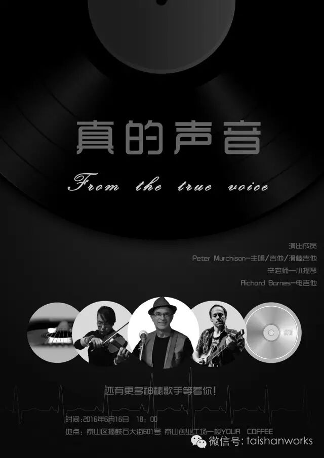 活动资讯 活动主题:真的声音 活动时间:2016年6月16日18:00 活动地点:泰山区擂鼓石大街601号泰山创业工场Your Coffee咖啡厅 柿子树下