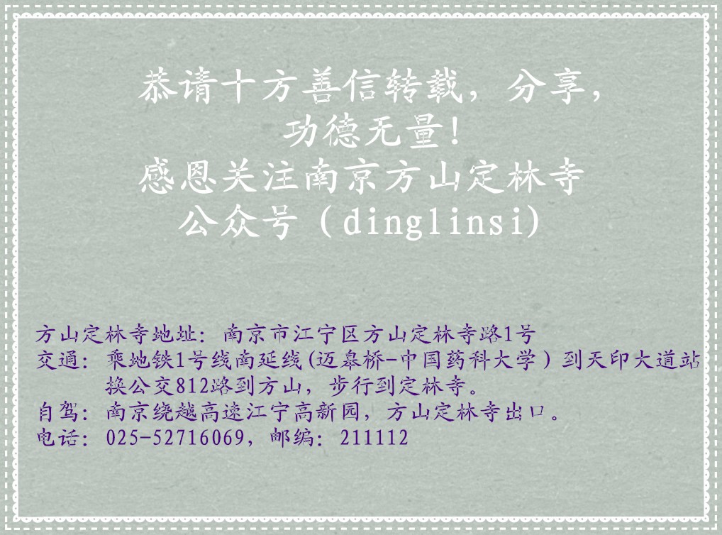 点文章标题下,日期旁的蓝色字体: dinglinsi就可以关注南京方山定林寺公众号咯!
