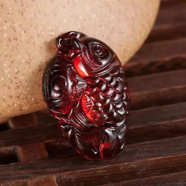 血珀通常是呈现正红色或是深红色,在阳光下透亮如血,颜色十分漂亮。琥珀本就是七宝之一,有辟邪保平安的作用,而血珀更是琥珀中非常珍贵的一种,其色彩浓重,象征着好运与富贵。