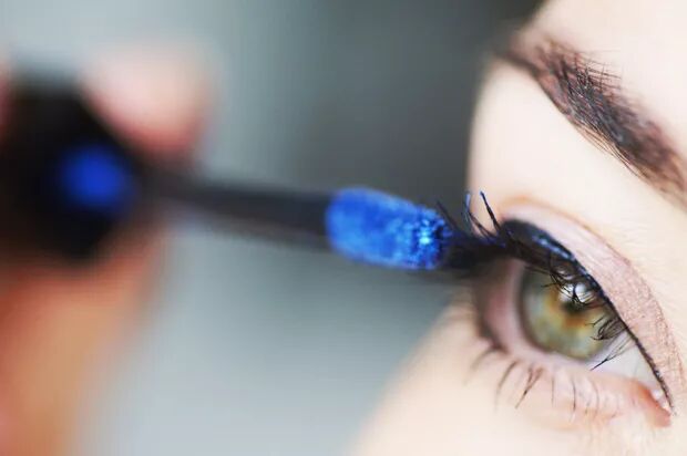 同时,深绿色眼线笔和紫红色睫毛液也配合得恰到好处。