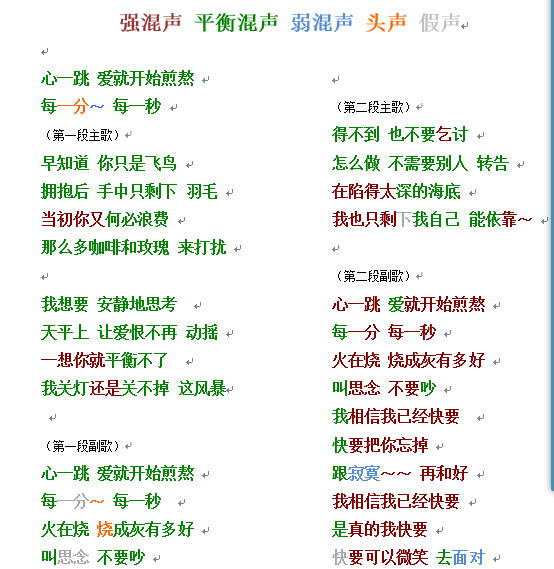 上面这篇彩色的标记,既是李佳薇的用声意识,也是她的歌唱意识。