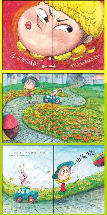 布谷期待已久的海边旅游因为爸爸工作泡汤了,可真是件让人遗憾的事。小布谷气的想要喷火。她气呼呼的拉着自己的小车,带着自己喜欢的小兔出去了。大自然的微风、花香冲淡了她的愤怒,她用力的呼气、吸气,感觉舒服多了。大自然确实有疗愈功能的。然后她愉快地回家了……