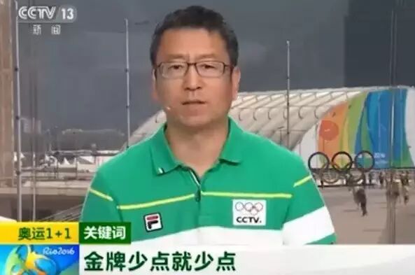 白岩松不这么认为。他在新闻频道的《奥运1+1》节目中说,“看客可以放松,不能唯金牌论,但运动员必须尽最大努力去争金夺银,不然那么辛苦苦练4年去参赛就没有意义了,所以运动员和参赛队绝对不能玩家心态,必须全力以赴为国争光。体育就是国家实力的比拼。”在白岩松眼里,金牌突然少了那么多,那肯定是有很大的问题的。中国军团的优势项目的确在减少,例如体操没有一枚金牌,射击只有一枚金牌,举重频繁出现意外,上届取得突破的游泳项目这次也只有一枚金牌……最终导致了目前中国军团只有15金。“虽然大家都在说淡化金牌意识,反对唯金牌论,但大部分人还是非常关注奖牌数和金牌数的”。