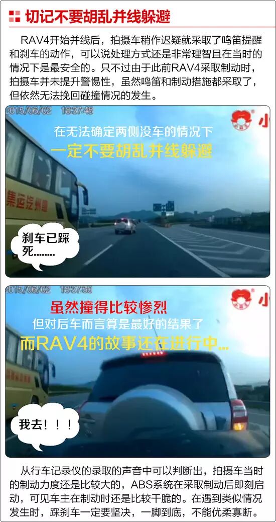 视频中后车两侧车道当时均有其他车辆行驶,所以后车最终采用的“直接撞”的方式应该说是正确的,最大限度地降低了这起事故带来的伤害。