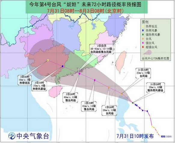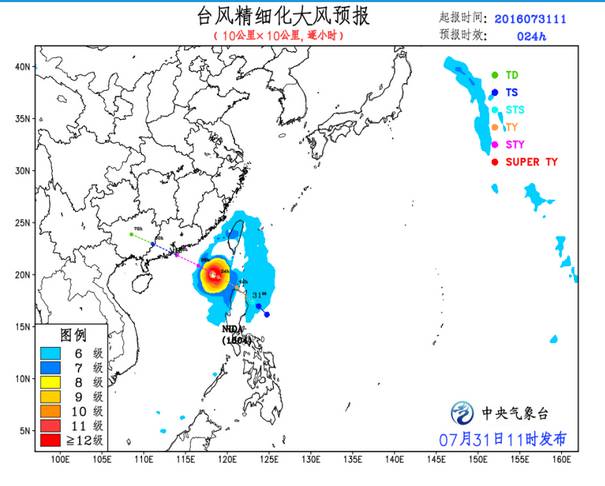 今早(31日)08时,今年第4号台风“妮妲”(英文:Nida,命名国:泰国,意为:女士名字)加强为强热带风暴。