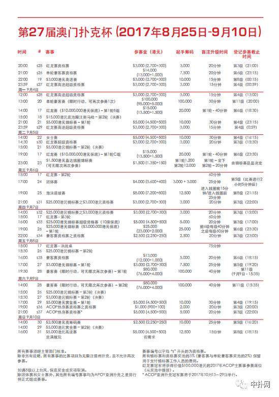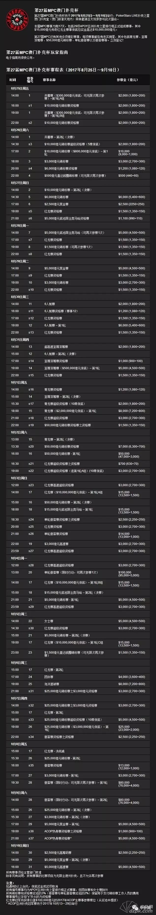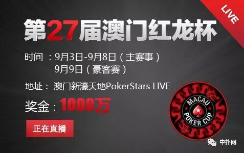 相较于如此诱人的比赛,牌手们更担心是在本月举行的MPC27澳门扑克杯是否还能如期举行?就在扑克杯开赛前一天(8月24日下午5点),PokerStarsLIVE_Macau微博宣布MPC27澳门扑克杯如约而至,而开幕赛(保证总奖金$300,000港元)也于8月25日下午两点展开竞逐。此消息一出,让大家之前悬着的心得以缓解。而中扑网小分队也会将赶赴现场,为大家带来第27届澳门扑克杯(MPC27)传奇的红龙主赛事全程的图文直播。想要了解到最及时的现场战报以及最新鲜的赛事资讯,请务必锁定中扑网专题直播页:http://www.dzpk.com/201709mpc/