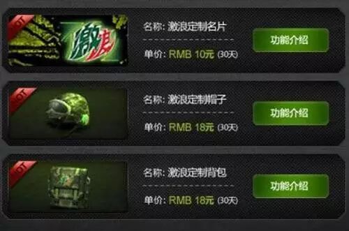 2010年随激浪抽奖一起出现,现在有些玩家的仓库中还留有几百天的激浪背包,头盔,名片什么的,那时候过来的老玩家们看到这里是否想起来当初喝激浪喝到吐就为了那一个瓶盖的感觉?(偷笑)