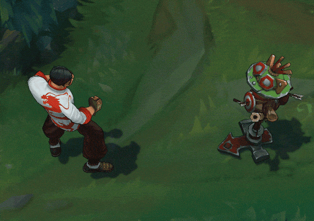 这个改动很简单,龙瞎现在大招猛龙摆尾会让李青的双手变成闪耀状态,龙也会发生和变化。简单的说就是他在使用R技能之后,背后的龙图案会闪耀,例如最基础的皮肤从红龙变金龙再到红龙。效果如下: