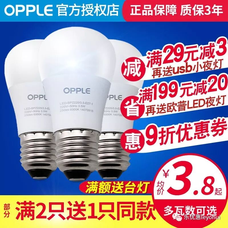 欧普led灯泡螺口小e14 e27高亮照明家用节能灯暖黄白光球泡灯光源